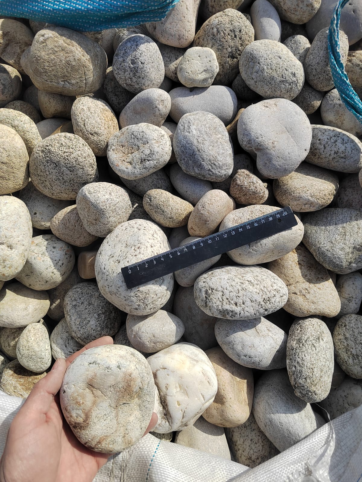Галька горная речная окатанная (серо-белая, "страусиные яйца")