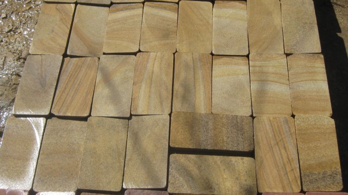 Kamenclub.ru: Песчаник пластушка желтый с рисунком (4-6 см)  купить в Челябинске плитняк пластушка желтый с рисунком песчаник 9 000 руб/м3   фото КАМЕНЬ КЛУБ
